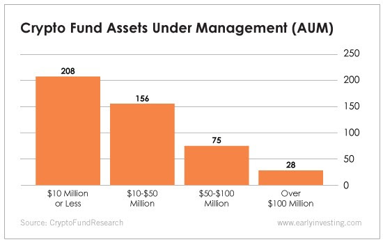 almeno per quanto riguarda gli investitori istituzionali e le criptovalute. Secondo Crypto Research Fund, ci sono oltre 460 fondi di investimento criptati. Questo numero comprende hedge fund, fondi di venture capital e alcuni ETF e fondi di private equity. La distribuzione di questi fondi è interessante. Attualmente, la maggior parte dei fondi ha meno di $ 50 milioni di asset under management (AUM). E i fondi con meno di $ 10 milioni di AUM rappresentano oltre il 40% del mercato. Questo è un cambiamento in tasca per i fondi hedge tradizionali. Ed è per questo che siamo così entusiasti del boom istituzionale dell'edificio in cripto.